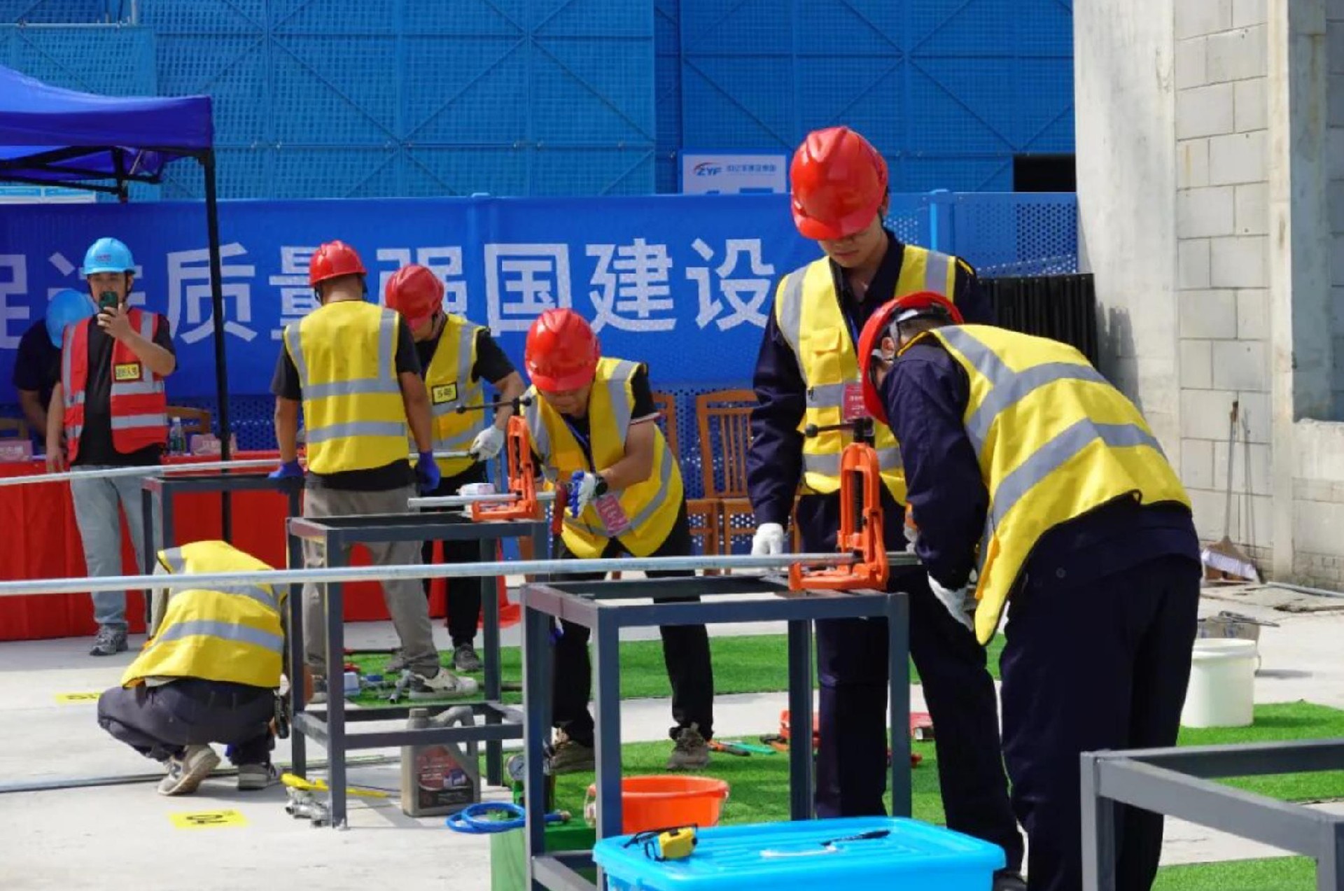 【概要描述】秋高气爽,匠心澎湃。为贯彻落实《关于开展2025年全省“质量月”活动的通知》的要求,2025年9月28日,江苏新有建设集团有限公司在承建的常州市第二工人文化宫项目现场,成功举办了以“加强全面质量管理,促进质量强国建设”为主题的“质量月”活动暨绿色建筑管道工程技能竞赛。此次活动将领导动员、理论知识考核···